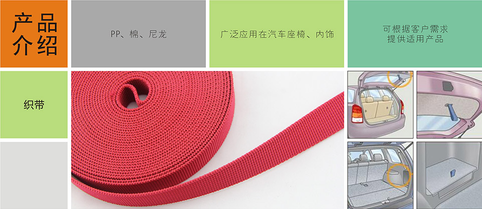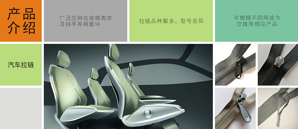 我們提供汽車專用拉鏈、標(biāo)識扣、標(biāo)識嘜、粘扣帶/刺毛帶,織帶/松緊帶,塑料扣件等其他汽車內(nèi)飾、汽車座椅系統(tǒng)部件。